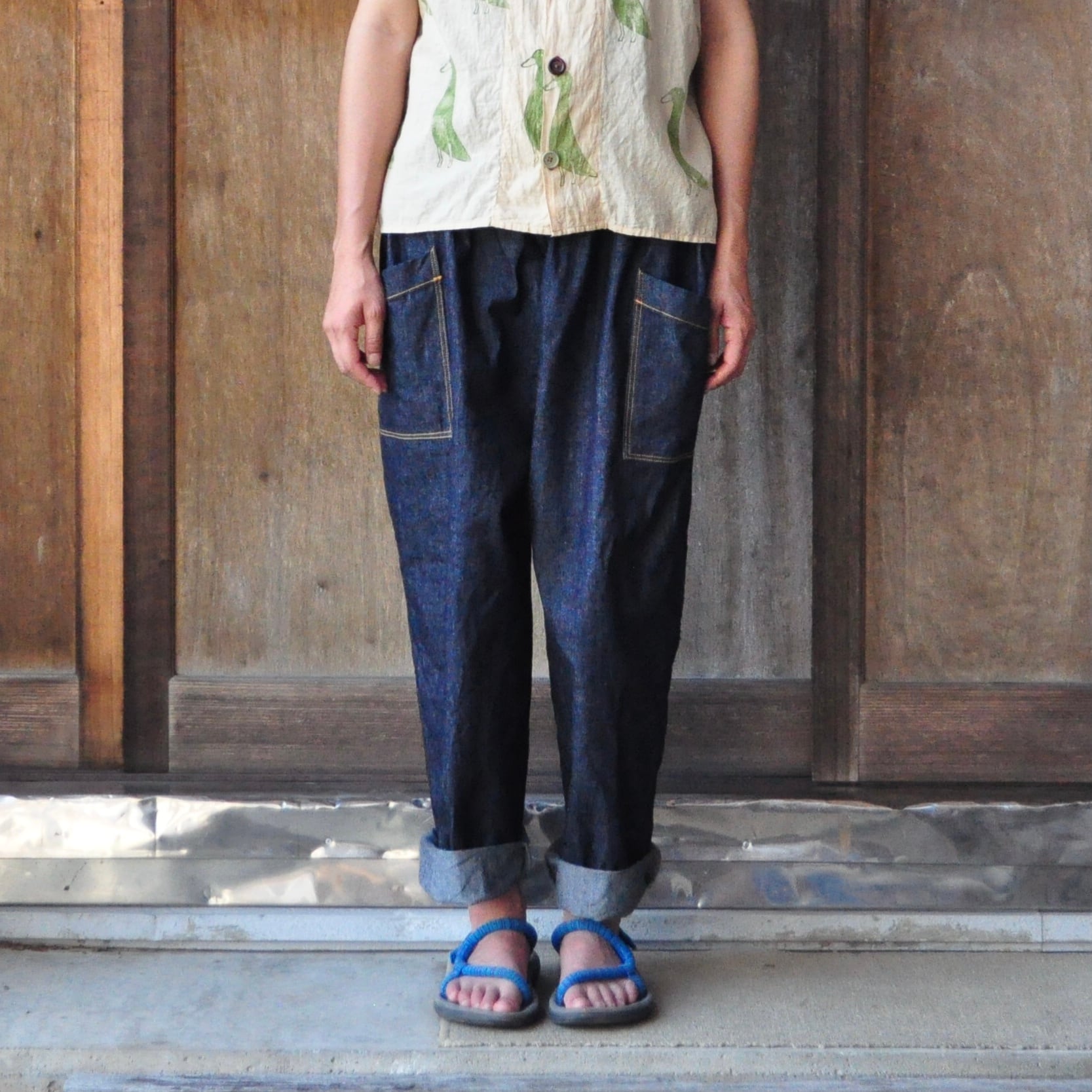 定番のもんぺ型を岡山児島デニムで作った「ジンペ」です。